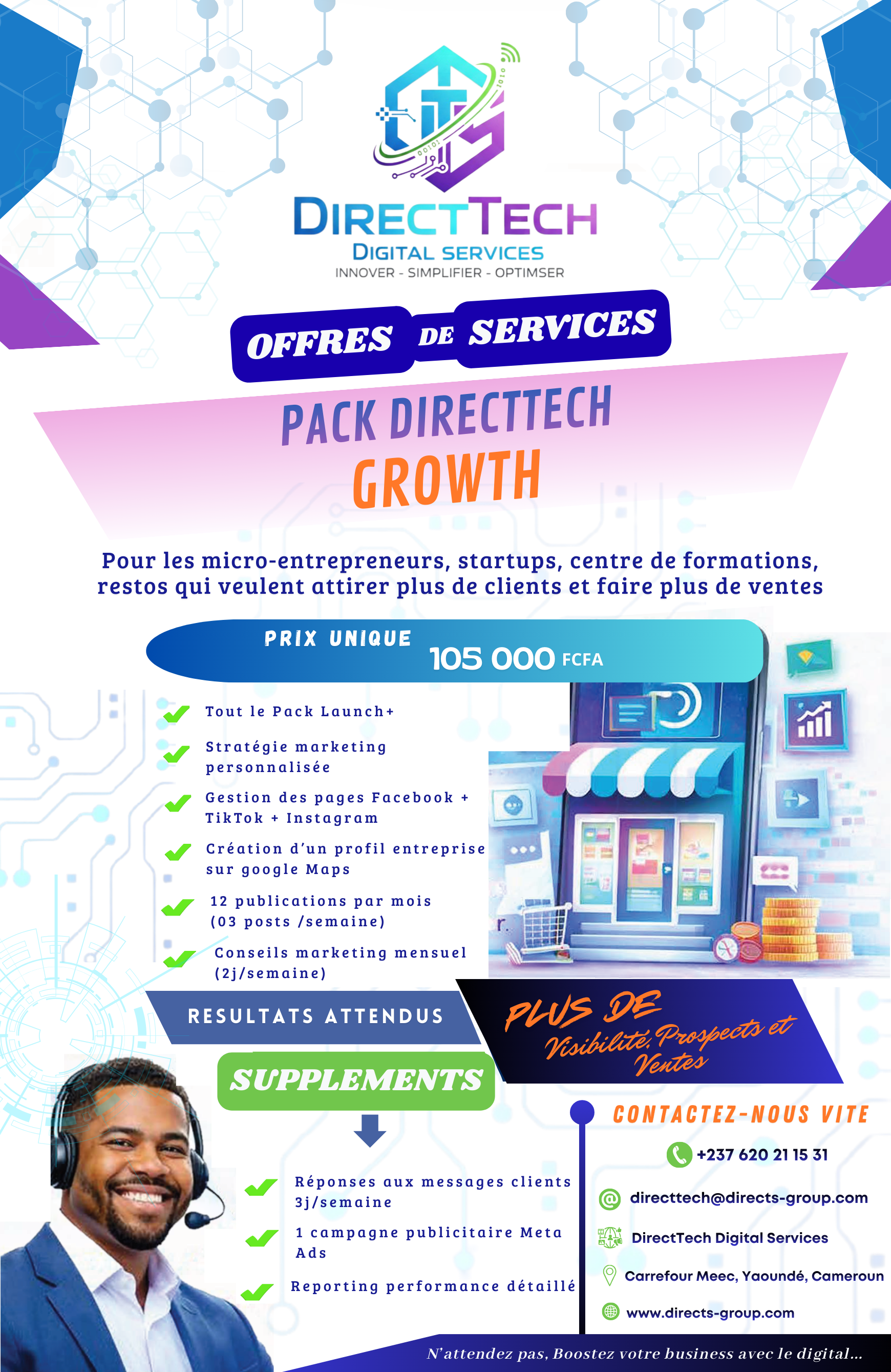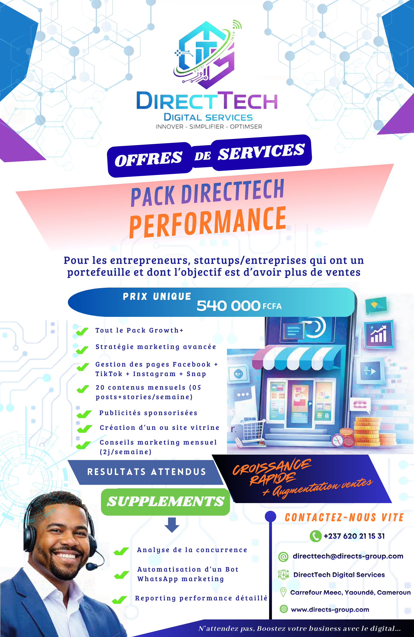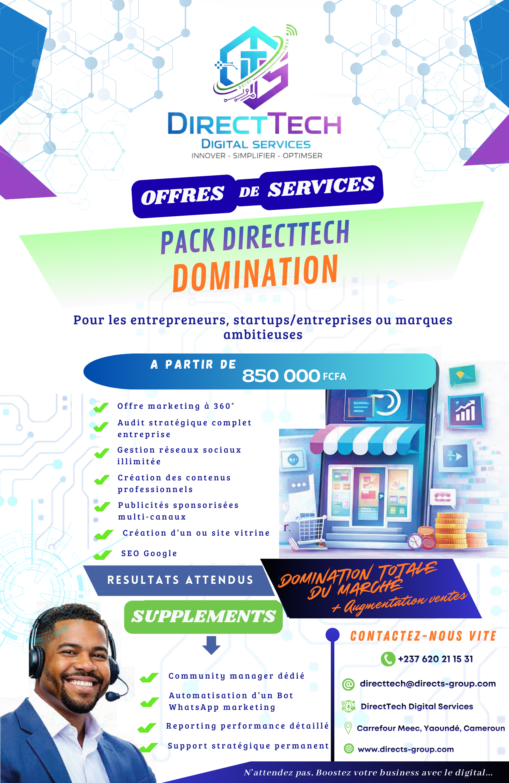 DirectTech Digital Services accompagne les entreprises dans leur transformation digitale. Nous aidons les marques à gagner en visibilité, à attirer plus de clients; à augmenter leurs ventes et à développer leur activité grâce à des stratégies marketing performantes.